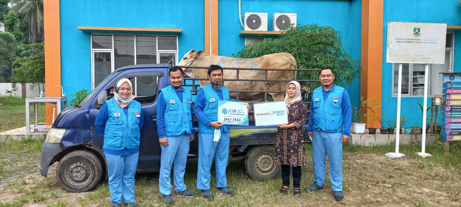Cilegon (08/07) - Welcoming Eid Al- Adha 1443 H, PT KPE carried out social actions by distributing Kurban animals. PT KPE through its Corporate Social Responsibility (CSR) program in July 2022 have distributed 1 cow for Tegalratu Villages on July 7, 2022. Also, on, July 8, 2022 distributed 1 goat to Kubangsari Village, Samangraya Village, and Ciwandan District.