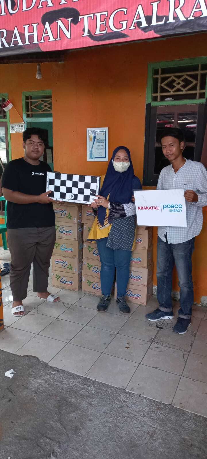 Cilegon (15/08) In 2022, Republic of Indonesia celebrates its 77th Independence Day. All Indonesians rejoice in celebrating the independence day and for commemorating this, PT Krakatau Posco Energy support the continuity of community service activities in the form of providing bottled drinking water boxes and chessboards to support the August 17 event for Kubang Sari Village and Tegal Ratu Village.